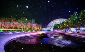 The illumination inspires a gentle image of the autumnal moon and brightens the colors of trees and flowers in the garden, taking visitors to a fairy tale world. The 80,000㎡ garden surrounded by corridors is lit up with 14,000 light bulbs. The nocturnal romantic garden is distinct from the daytime.