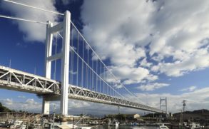 Seto Ohashi Bridge is the generic name of ten bridges which connect Kurashiki of Okayama prefecture of the main island and Sakaide of Kagawa Prefecture of Shikoku. The view of six different types of bridges, such as suspension bridges spanning the strait, cable-stayed bridges and a truss bridge is marvelous. On the top of Mt. Washu, we can enjoy a panoramic view of islands dotting the calm sea and the magnificent bridges.
