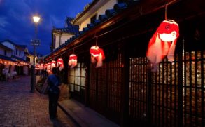 The land adjustments established during the Middle Age has not been changed. Marchant houses which were built during the Edo Era (1603-1868) line the 200 meter street. The town was known as “Warehouse of Iwakuni Domain”, as lots of carts loaded with local products frequently passed through the street.