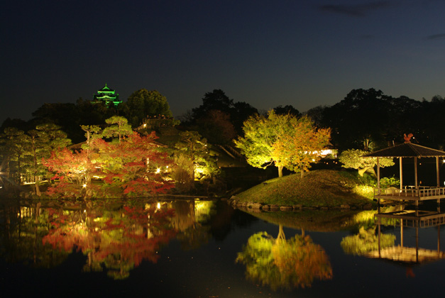 岡山市内で14万4000平方メートルの広さを誇り、特別名勝に指定される日本庭園。夏と秋には「岡山後楽園」と「岡山城」がライトアップされ、幻想的な光に浮かび上がる「幻想庭園」を開催する。ナイトガイドやステージイベントなどもあるので、日常とひと味違う、夜の後楽園を存分に楽しめる。
